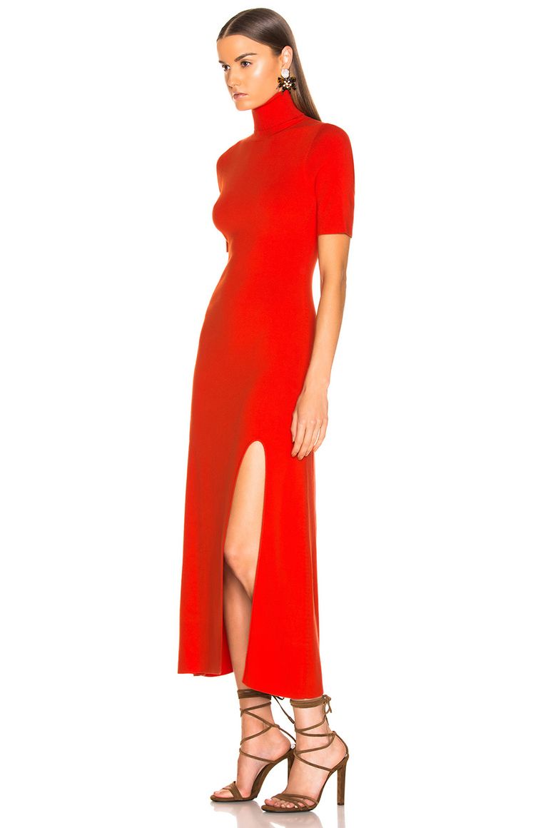Geniş balıkçı yaka tasarımı, yırtmaç detayı ve kırmızı renkteki sadeliğiyle benzersiz bir tarza sahiptir. Bu elbisenin yaka bölümü, çarpıcı bir görünüm sağlamak için üst kısmında biraz gevşek olarak tasarlanmıştır. Aynı zamanda balıkçı yaka, omuzlarınızı öne çekerek zarif bir görünüm yaratır.